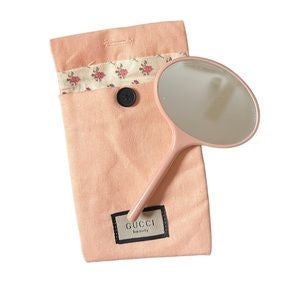 Gucci 古馳 粉色碎花系列 手持鏡配帆布收納袋
